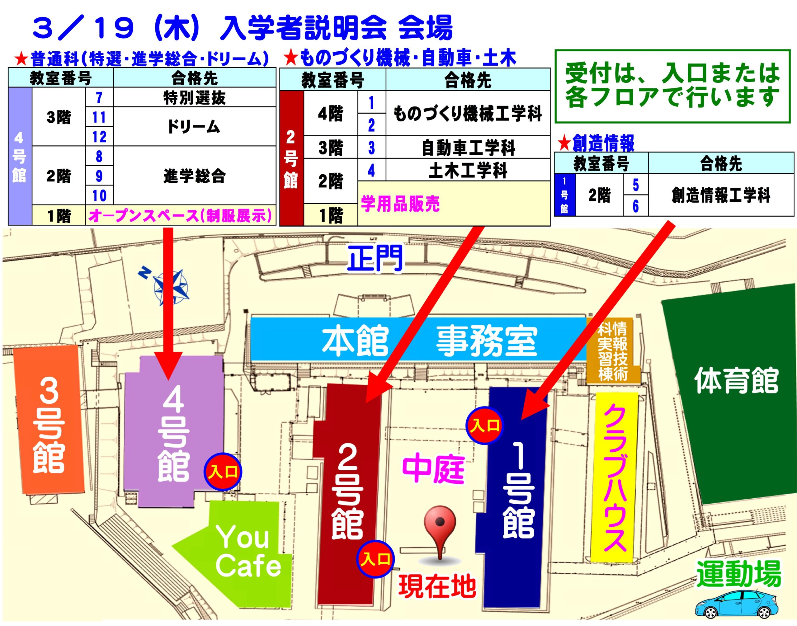 当日、ご不明な点がありましたら、ご遠慮なく本校職員にお尋ねください。