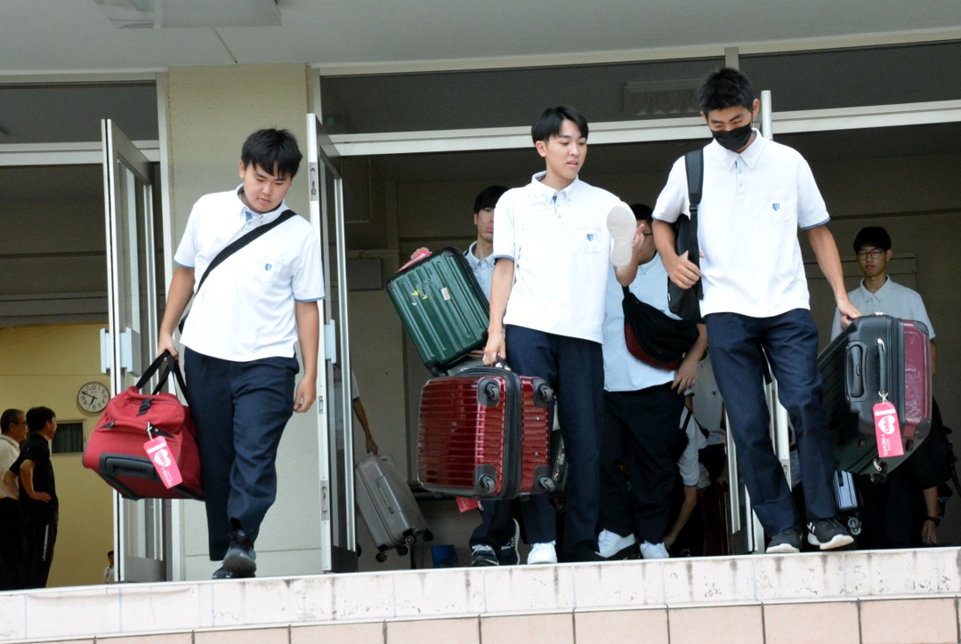 集合時間が6:20でしたので日頃より2時間ほど早く登校した生徒も多かったと思います。