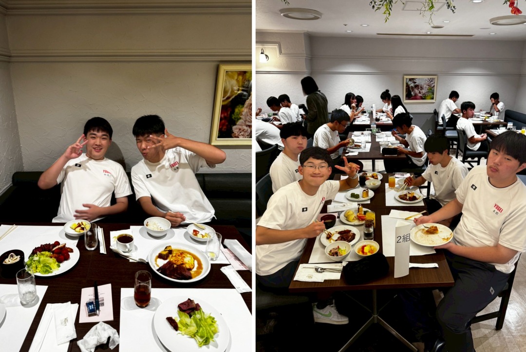 自主研修の日は、写真を撮る機会がありませんので、朝食と自主研修出発、帰着のときがシャッターチャンスでした!