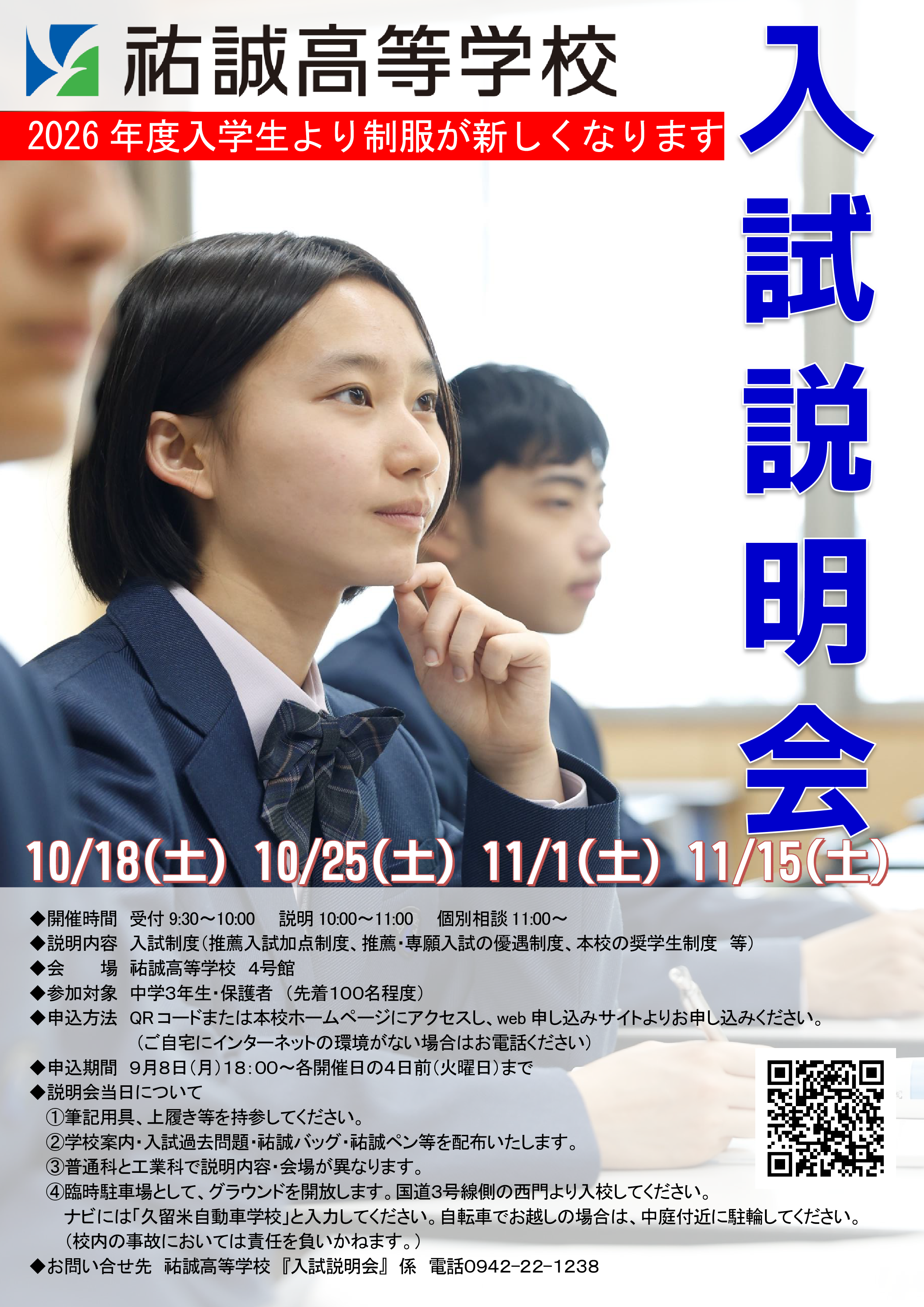 【中3生・保護者対象】入試説明会を実施します 10/18(土) 10/25(土) 11/1(土) 11/15(土)