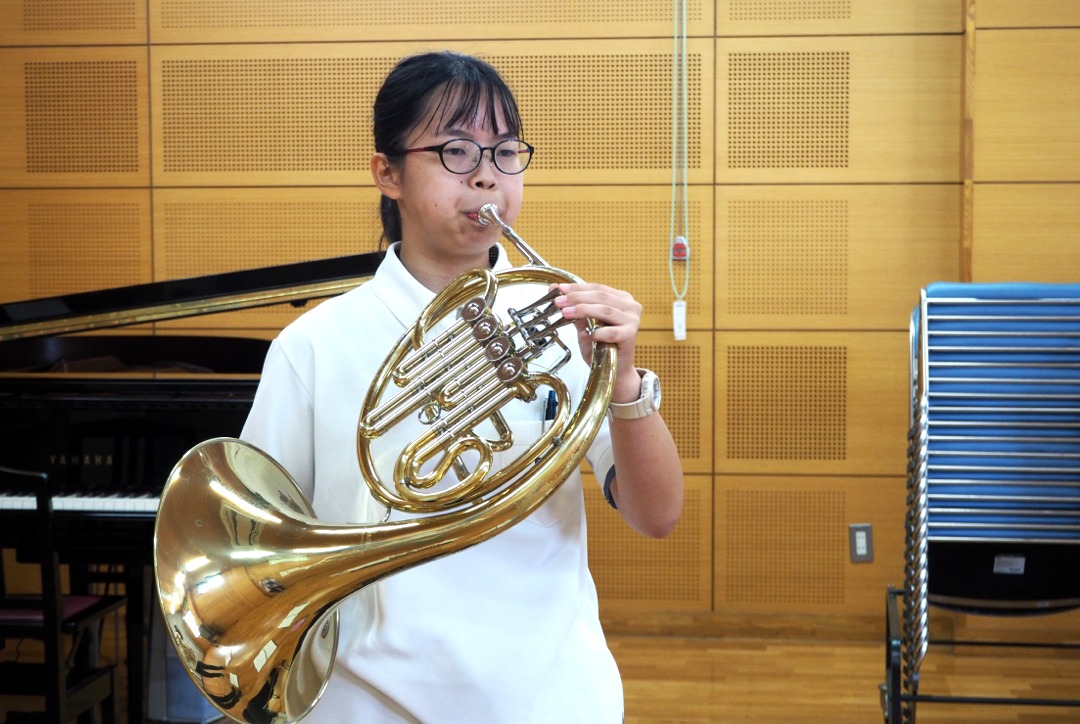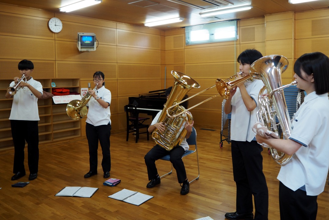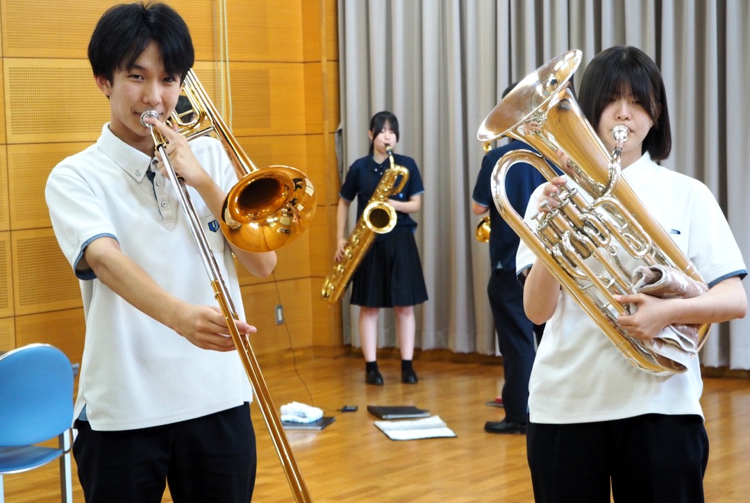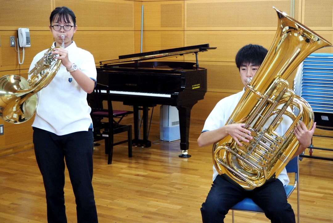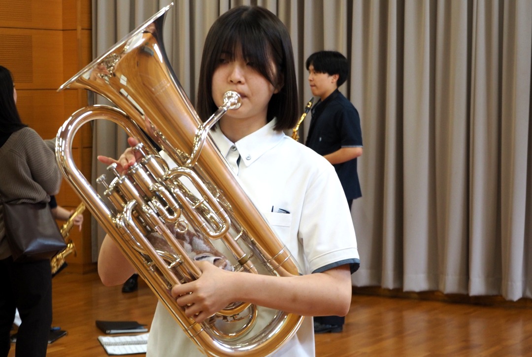 いつもとは違って、少人数で広いステージで演奏することに緊張しましたが、一人一人の技術向上ができ、楽しく演奏できました。