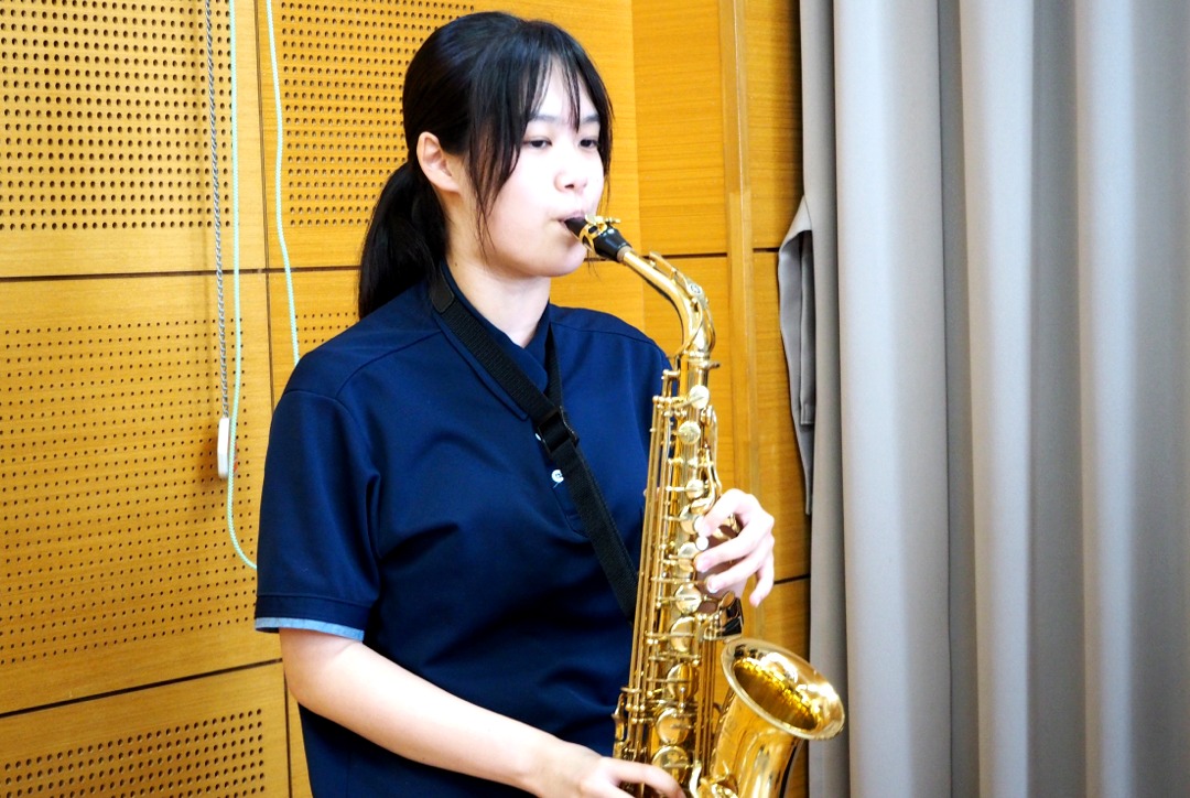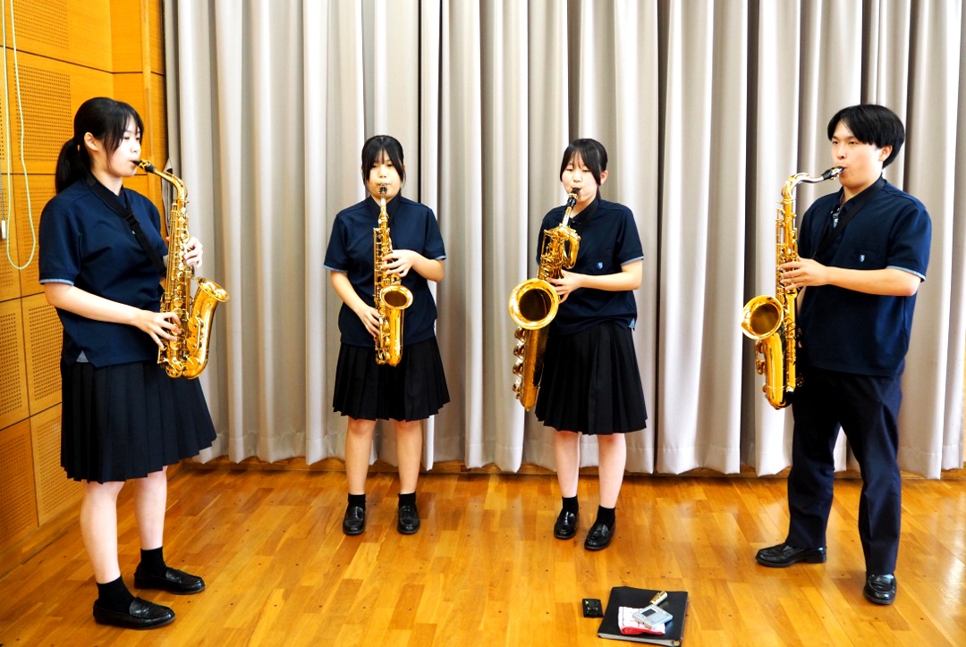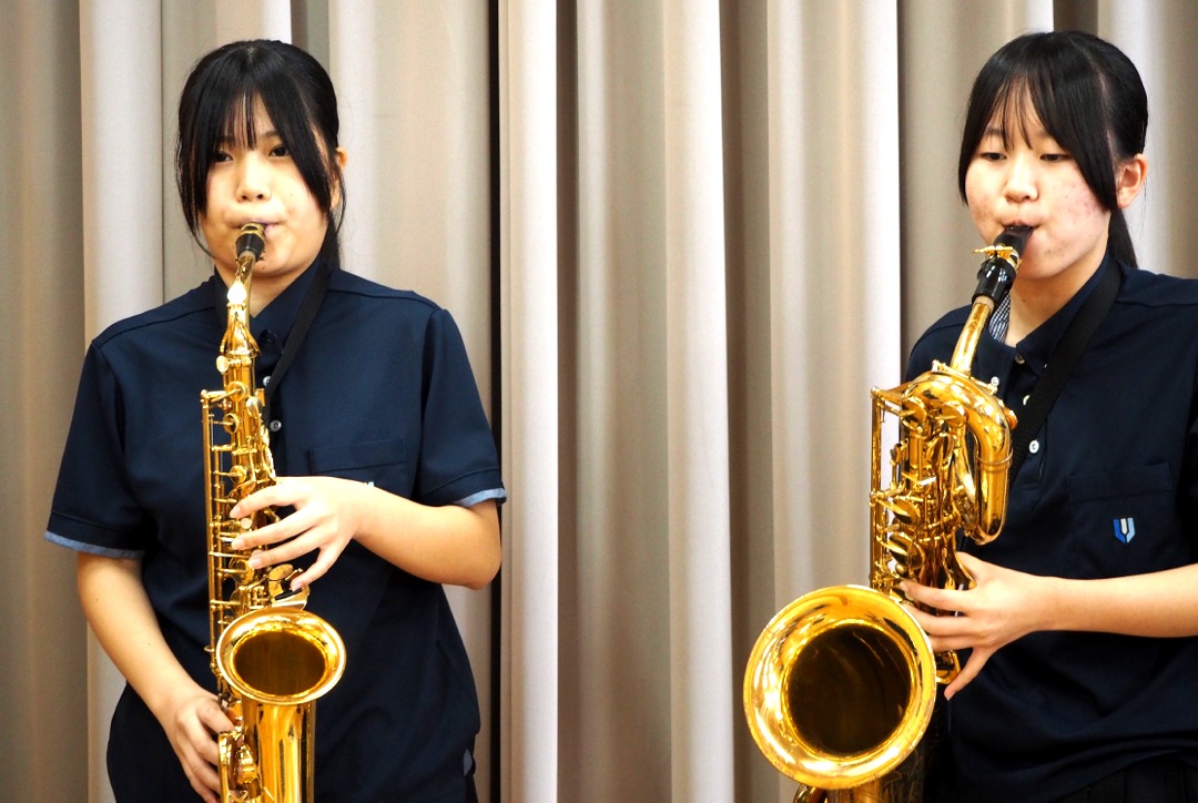 サックスアンサンブルで「残酷な天使のテーゼ」、金管アンサンブルで「ディズニープリンセスメドレー」を演奏しました。