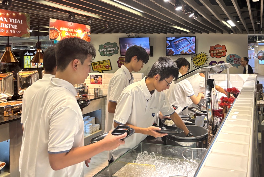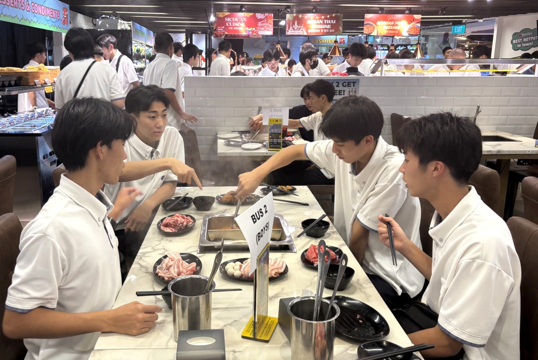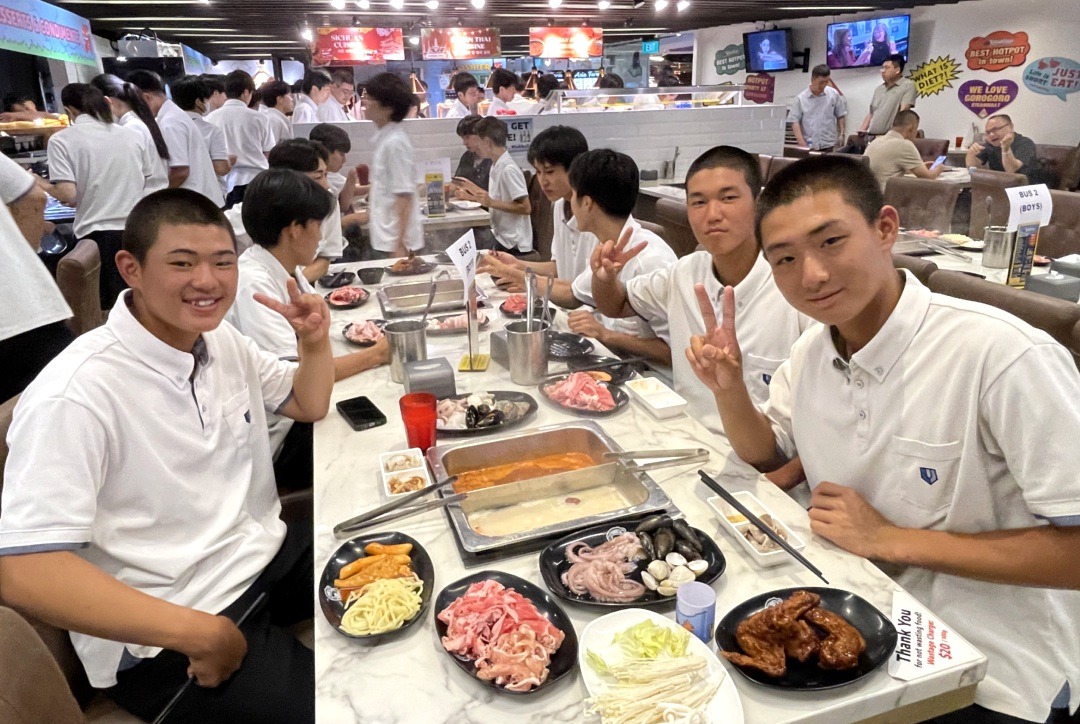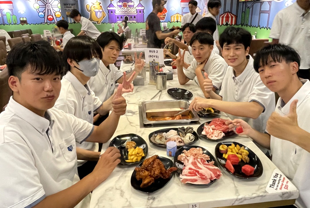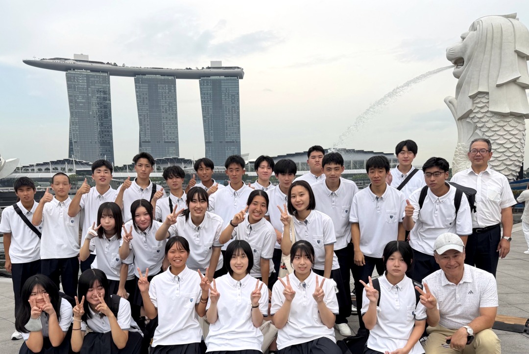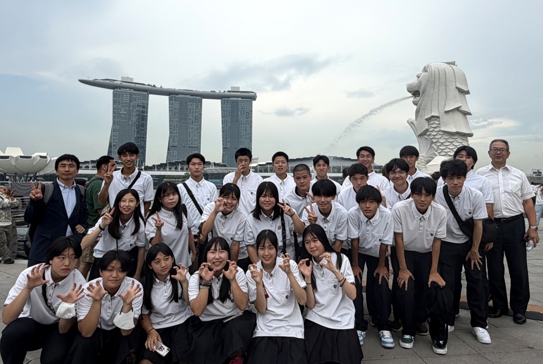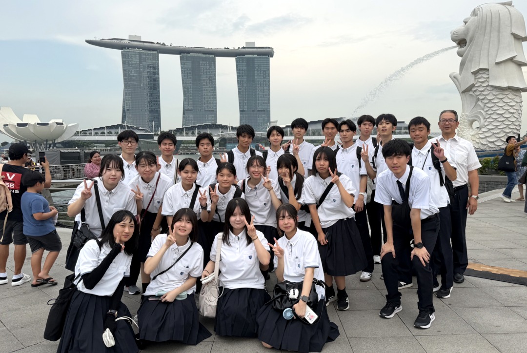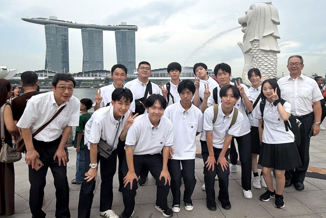新着情報NEWS 10月13日(月)普通科語学研修旅行-2(福岡空港~) 2025.10.14 10月13日(月)福岡空港~ 1日目福岡空港から夕食までの様子です。 飛行機に乗る前からテンションも高く、ほんとに楽しそうでした。 機内食もおいしくいただきました。 シンガポールに到着した後は、マーライオン公園で写真撮影をしました。 夕食は、2班に分かれ、1・2号車が韓国しゃぶしゃぶで、3・4号車が中華料理をいただきました。 2日目は、観光地を見学します。アラブストリート・チャイナタウン・リトルインディアンなど、、、 夕食は、1日目の場所と入れ替わりの会場で食事をとります。 前へ 新着情報一覧へ戻る 次へ
