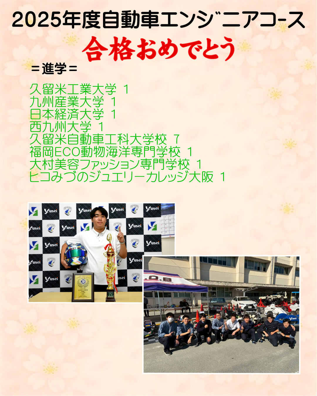 【自動車エンジニアコース】就職内定・大学合格おめでとうございます