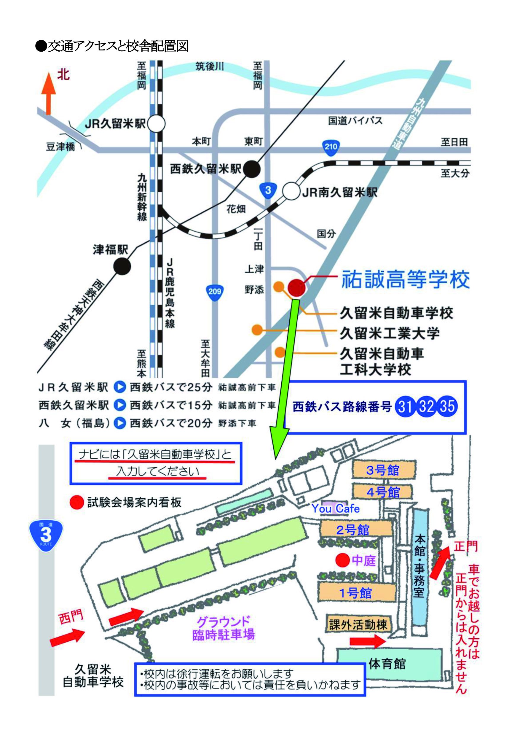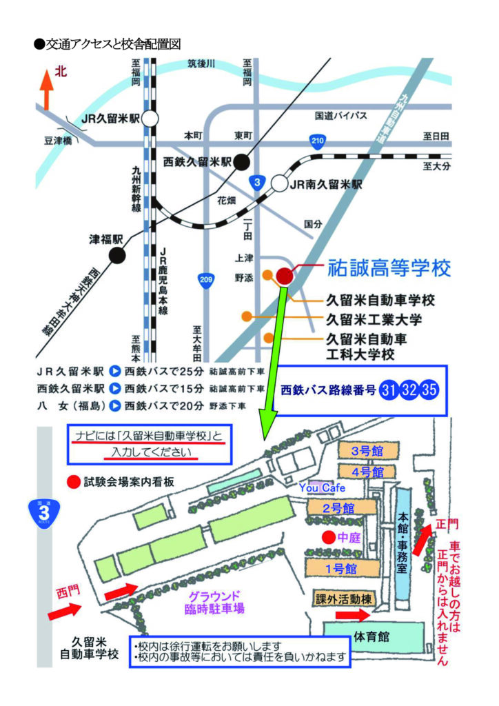 (ナビに久留米自動車学校と入力してください)