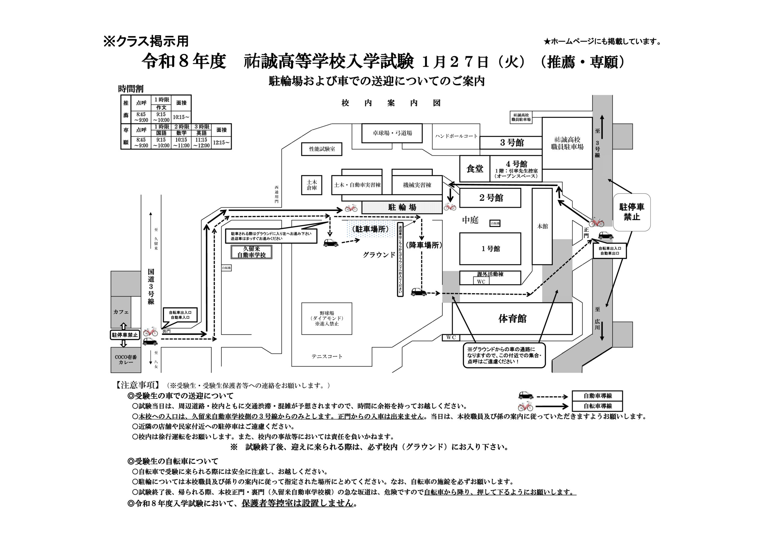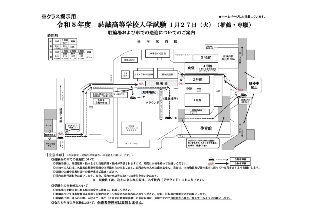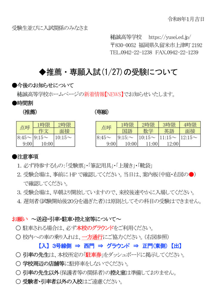 1月19日更新の「受験上の注意」と「車の送迎について」の確認をお願いいたします。