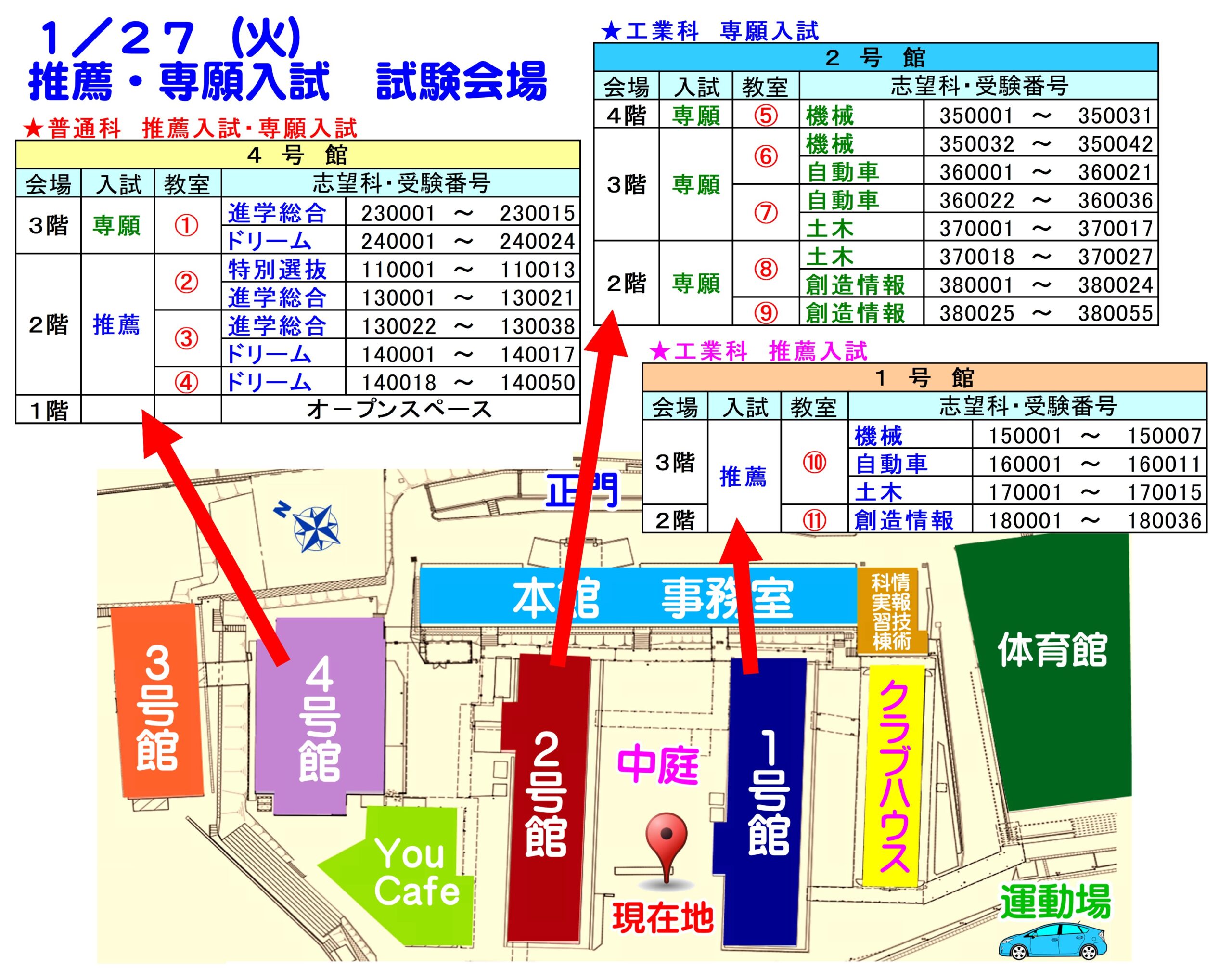 新着情報NEWS 1月26日更新 【推薦・専願入試 最新情報】 2026.01.26 1月26日(月)更新 推薦・専願入試の試験会場をご案内いたします。 車でお越しの場合は、国道3号線側から入校してください。 (ナビに久留米自動車学校と入力してください) 保護者控室は準備しておりません。 面接試験が終了した受験生から順次解散になります。 (1月23日にご案内した試験会場図の受験番号に一部間違いがありました。ご迷惑をおかけした関係者の皆様にお詫び申し上げます。) 前へ 新着情報一覧へ戻る