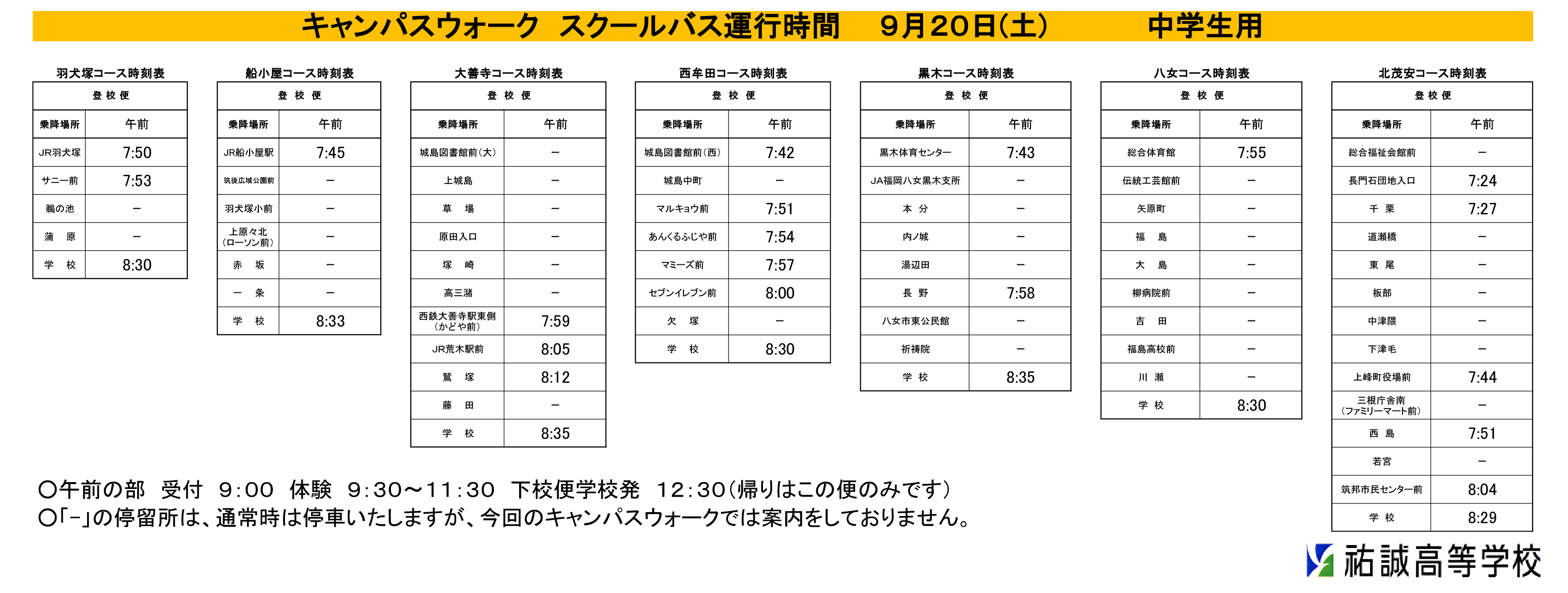スクールバス時刻表